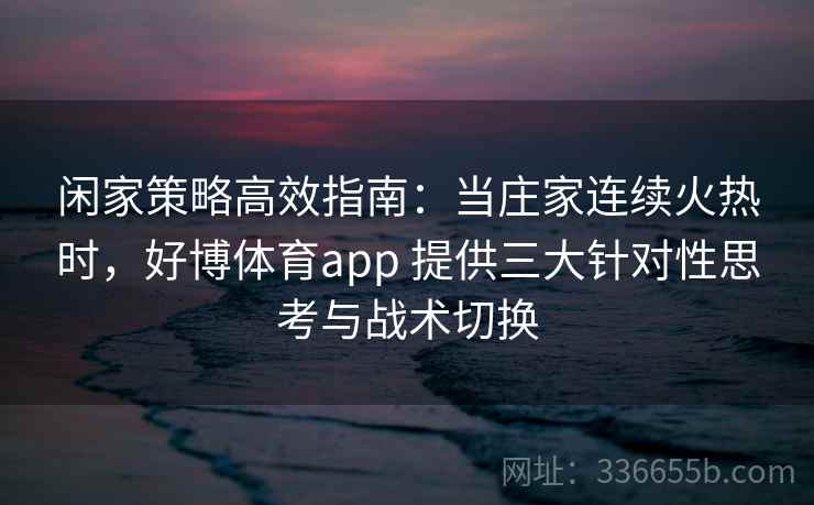 好博体育app的三大战术转换策略为您的投注之路提供了全面的保障。通过深入的分析和灵活的策略调整,您不仅能够在庄家持续热门的情况下稳定收益,更能实现长期的投注成功。立即下载好博体育app,体验智能投注的魅力,让您的投注之路更加轻松和高效,助您收获满满盆满钵盈!