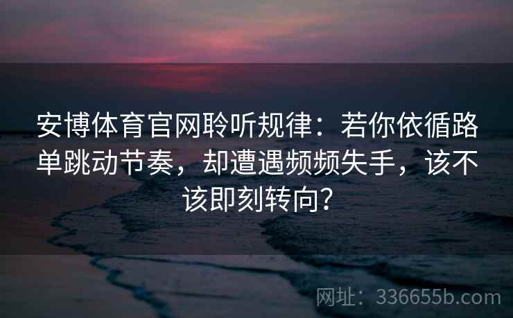 在安博体育的世界里,运筹帷幄、精准预测,似乎是所有玩家共同追求的目标。尤其是在体验“路单跳动”这一玩法时,它的节奏感和精准度使得无数玩家为之倾心。路单跳动节奏的核心,是依据过去的跳... 在安博体育的世界里,运筹帷幄、精准预测,似乎是所有玩家共同追求的目标。尤其是在体验“路单跳动”这一玩法时,它的节奏感和精准度使得无数玩家为之倾心。路单跳动节奏的核心,是依据过去的跳动数据,推测未来可能的趋势,合理做出投注选择。通过这样的方法,许多玩家在游戏中屡屡获胜,并感到一股成就感。随着时间的推移,部分玩家会发觉自己陷入了频繁失手的困境,尽管依然按照既定的路单跳动节奏行事,结果却不如人意。这时,问题就来了:若你依循路单跳动节奏,却遭遇频频失手,是否应该即刻转向?在这个问题上,我们需要从多个维度进行分析,找到合适的答案。